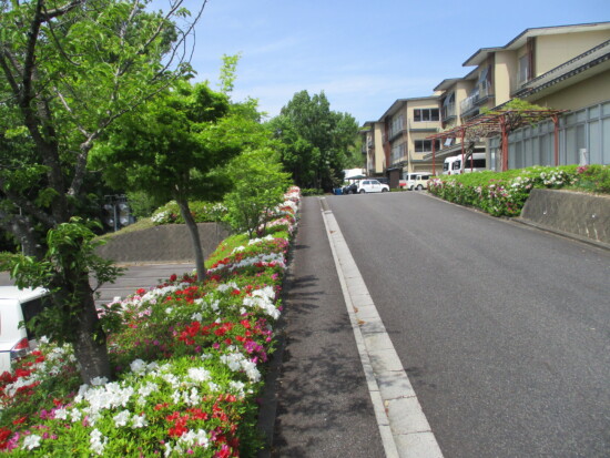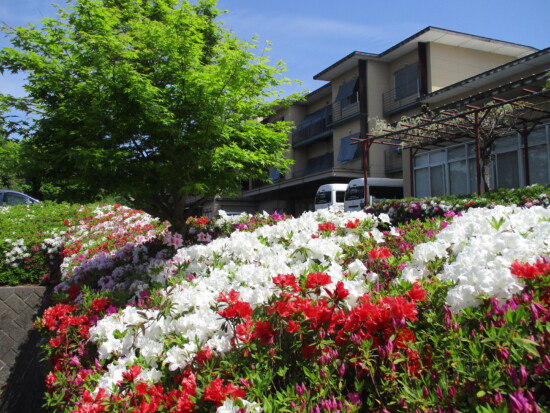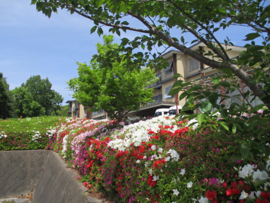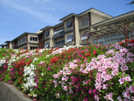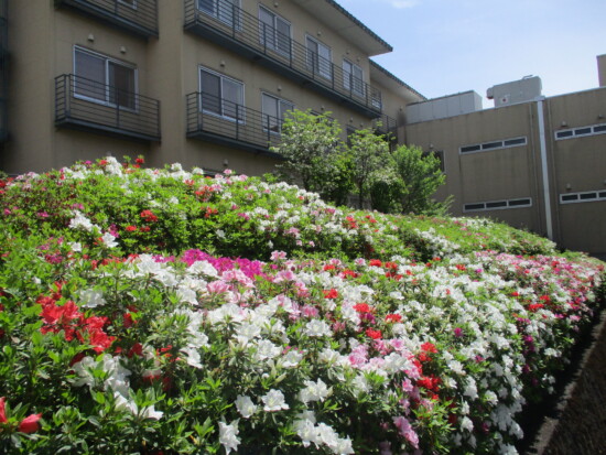 4月も後半に入り日中はすっかり暖かく、春というより初夏を思わせる日が多いですが、みなさんいかがお過ごしでしょうか。 つつじヶ丘では、施設のシンボルの花が満開を迎えています。 今年は気温が高い日が多く、つつじの開花が例年よりも早かったです。 去年に職員自身でつつじの剪定を早めに行ったおかげなのか、今年はたくさんの花が咲き、とても奇麗です! 今年も、来年のために剪定を頑張りたいと思います。 春とはいえ朝晩はまだ冷え込む日もありますので、お体には十分にお気をつけてお過ごしください。